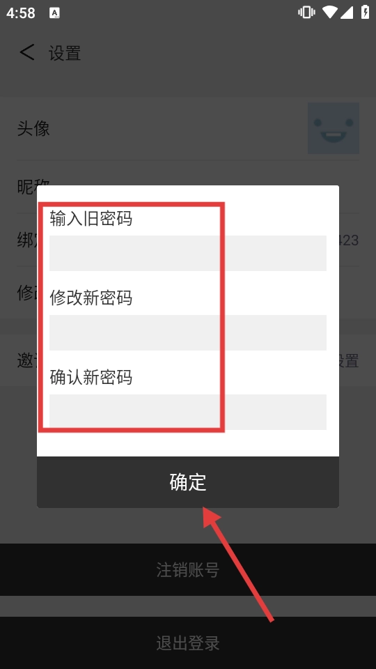 4、在密码修改弹窗中,填写旧密码、新密码等信息后,点击【确定】按钮即可完成密码修改操作。