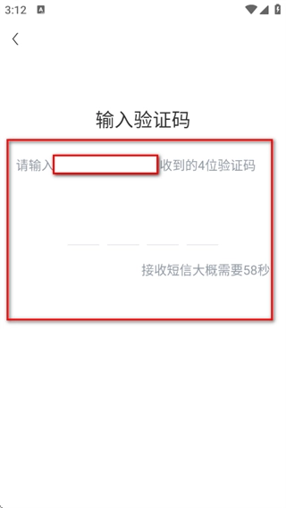 4、进入验证码输入页面后,请把收到的4位验证码准确填写到对应的输入框内,以此完成注册流程。