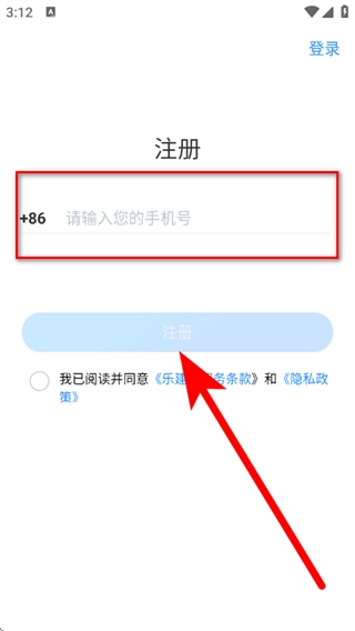 3、进入注册页面后,填写您的手机号码,勾选相关协议,然后点击注册按钮。