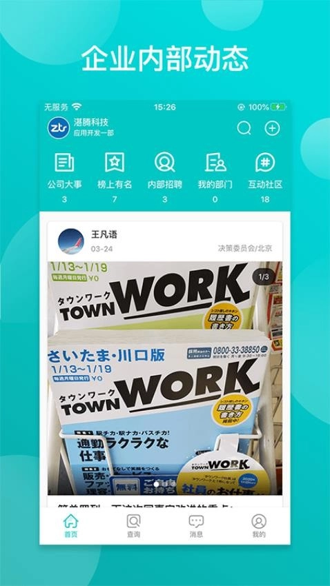 4、能够随时在线查看企业内部招聘信息以及各类公司重大事项动态;