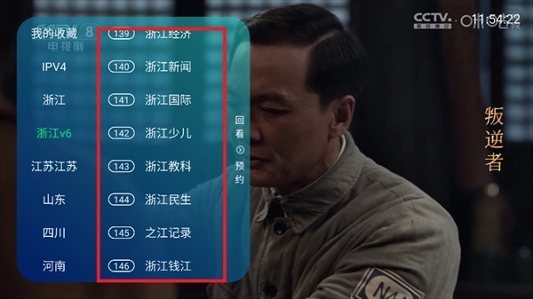 2、点击屏幕左侧弹出电视频道栏