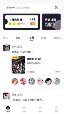 3、提供快速拼场、每日免单、遇见对的人、此刻等多样化功能,可全方位满足各类用户的社交需求。