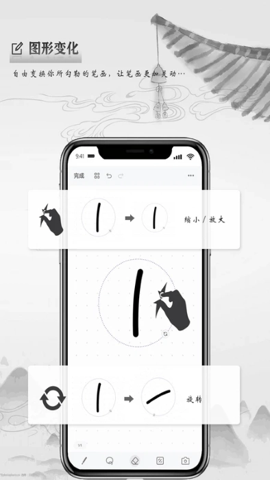 1.支持单选单个图形,也可通过双指操作全选任意图形;选中的图形能够进行无限缩放。