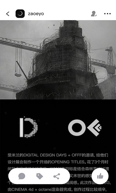 3、用手指在屏幕页面上向上滑动,作品说明文字、设计理念等详细信息就会逐步完整地显示出来。