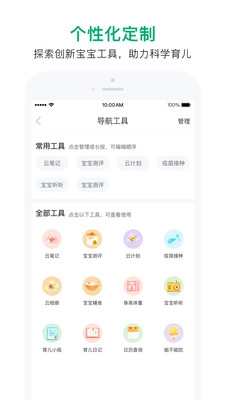 1、宝宝管家是优质育儿的得力助手,依托科学的管理规划,让父母的育儿生活更有条理,为您提供专业的育儿指导。