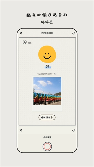 1、一键快速记录每日心情,清晰掌握生活状态,助力规划生活节奏,提升生活品质。