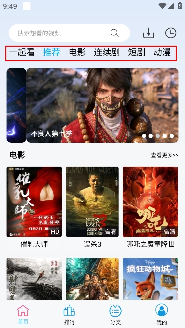 1. 打开应用后可以看到首页设有多个分类频道。