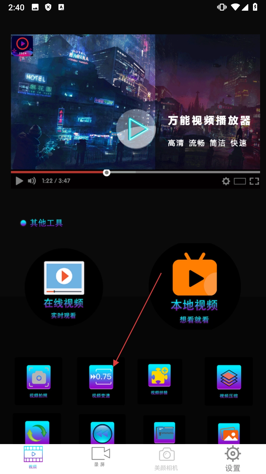夜影院播放器 视频变速功能 视频编辑工具
