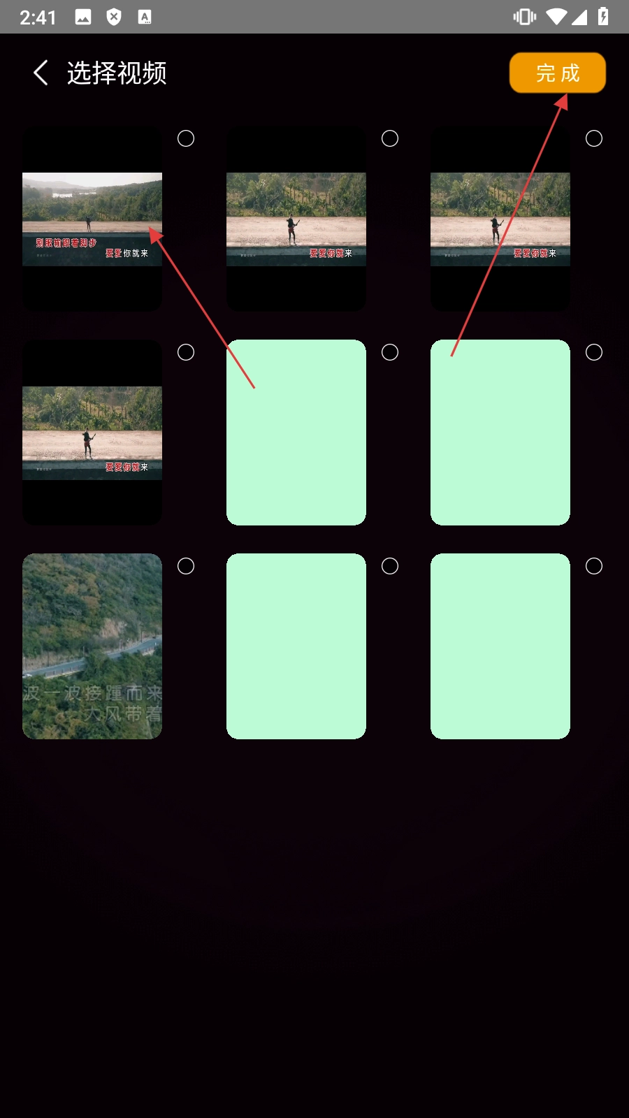 2、在视频选择页面选定目标视频后,点击【完成】按钮,即可进入视频变速设置页面。