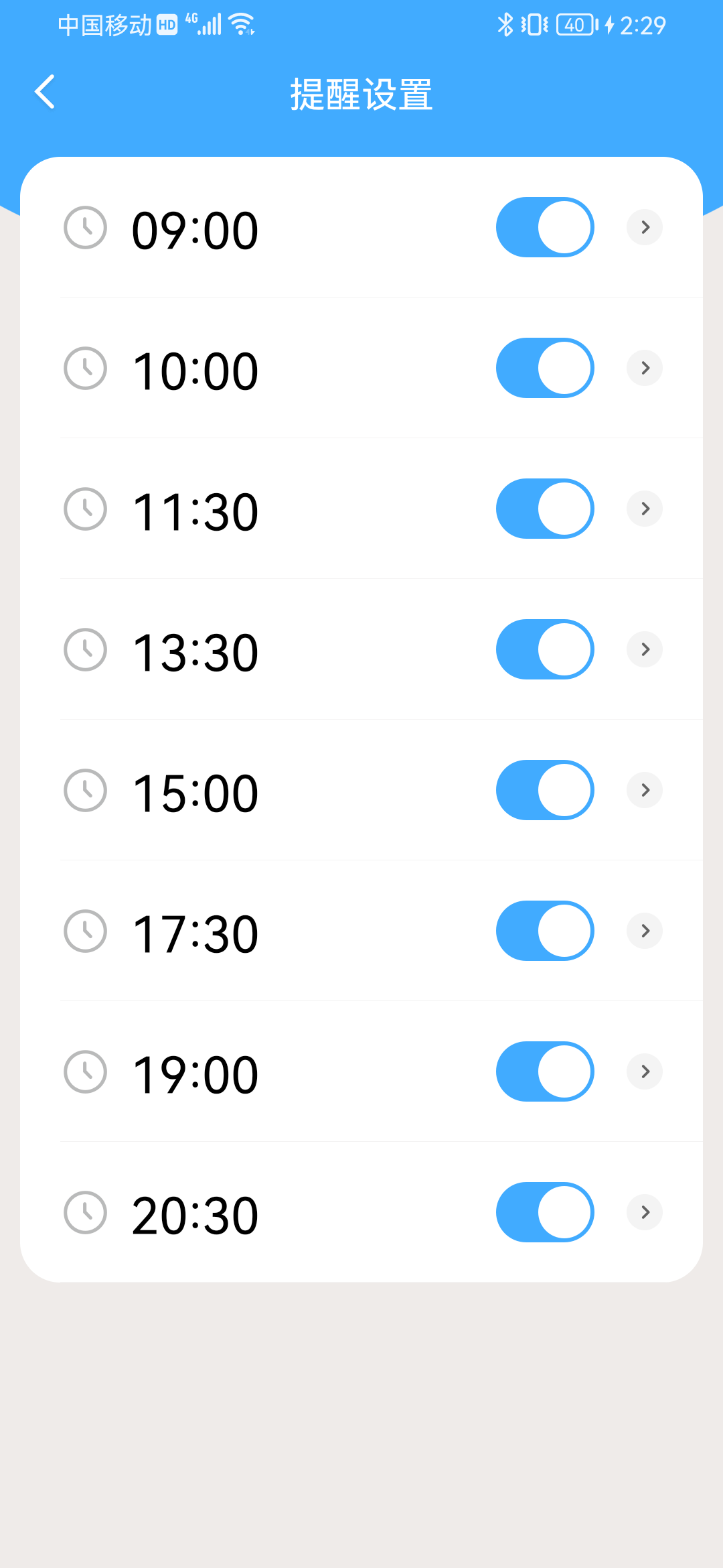 3、每日饮水目标的数据进行设置,到点提醒你喝水。