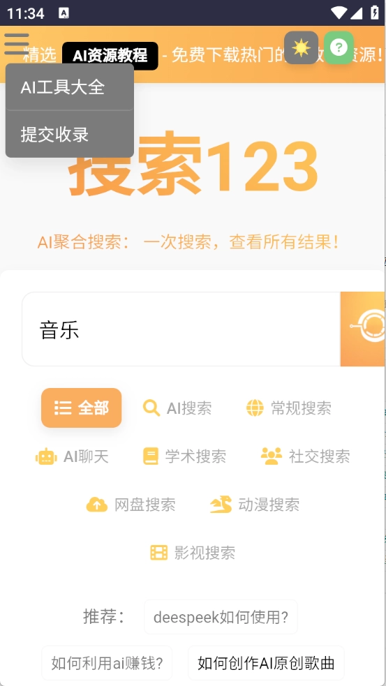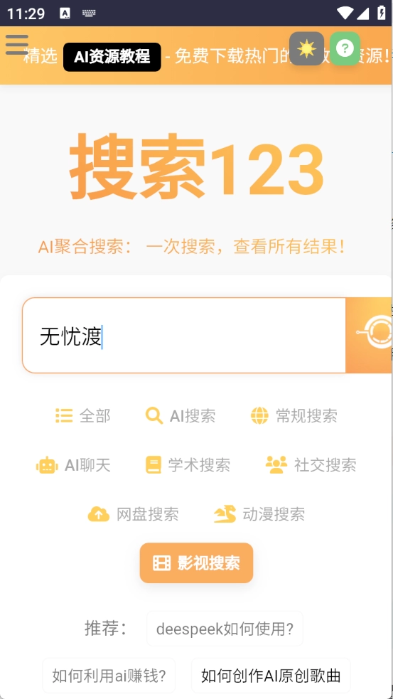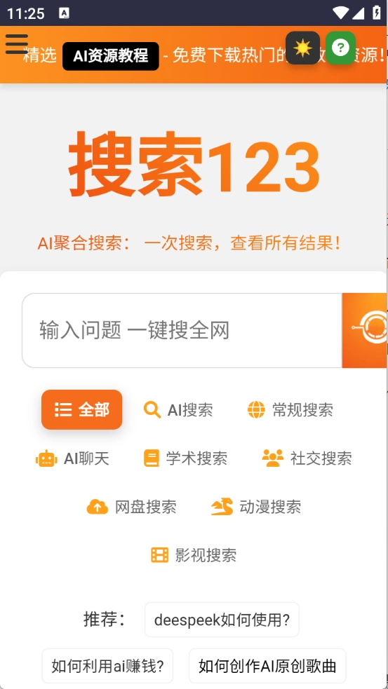 搜索123,这款全能的资源搜索神器,不仅能进行AI问答,还可以搜索影视、小说、动漫等各类资源,而且所有资源都是免费的。你还能对搜索到的内容进行分享和收藏,轻松满足不同用户的资源查找需求,遇到任何疑问,只需一搜就能找到答案。