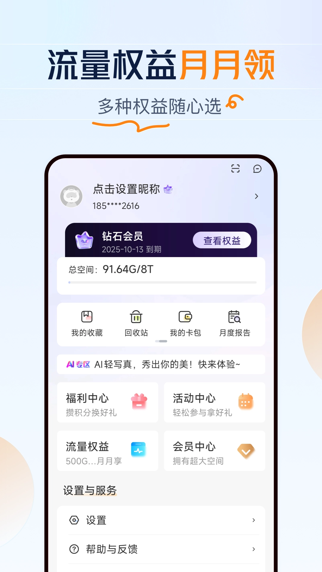 联通云盘手机版是面向个人与家庭用户的云存储服务,支持家庭云内容、微信数据、通讯录、相册、视频及多设备文件的上传与备份;具备相册一键备份、智能AI分类检索浏览、AI写真定制等功能,还提供即时通讯聊天与会话服务,以及老旧照片修复、AI助手等实用工具,可满足用户多样化需求。