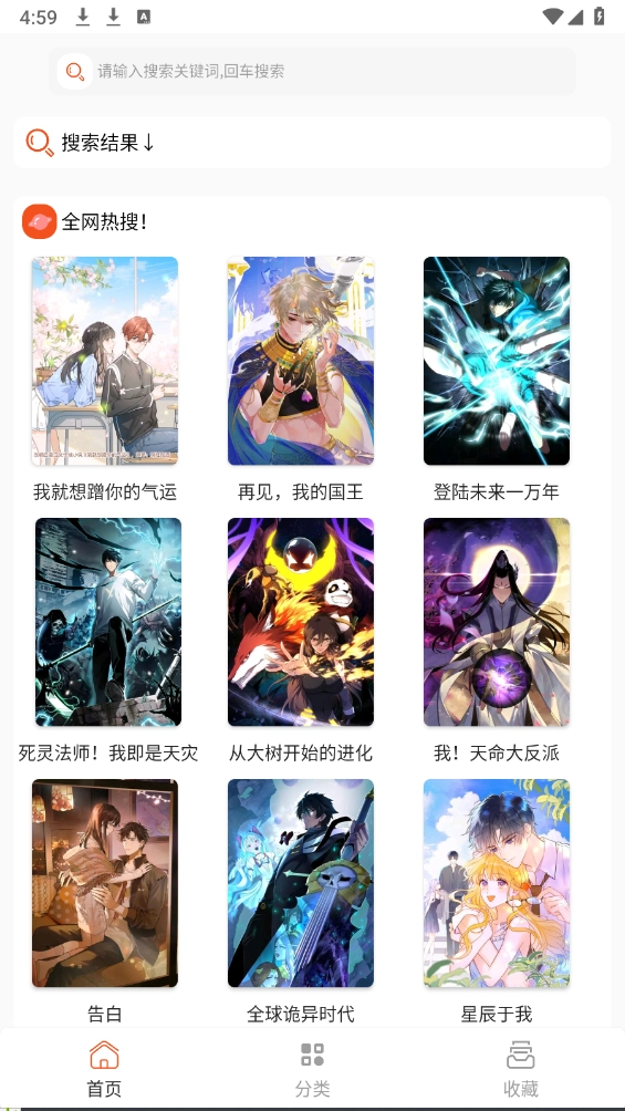 进入首页或分类板块,这里汇聚了海量热门漫画资源,涵盖韩漫、日漫、国产漫画等多种类型,也支持通过关键词搜索查找。