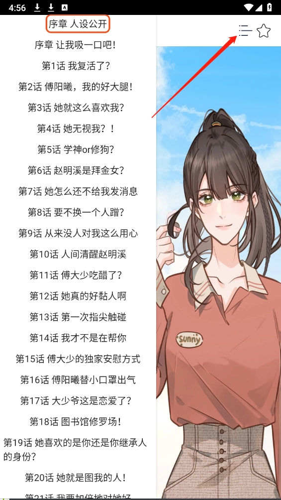 4、点击右上角的按钮即可查看目录,选中想要阅读的章节就能完成页面切换。