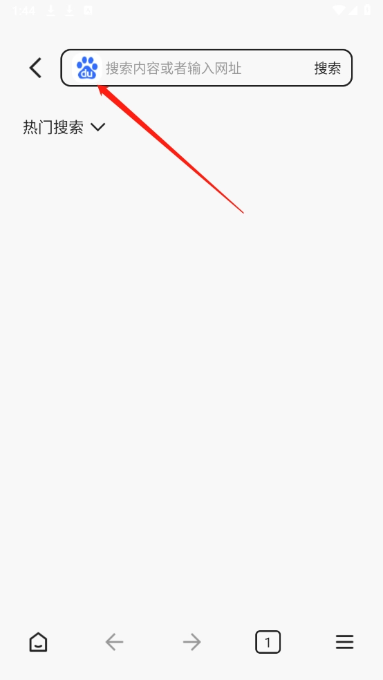 2、点击箭头指示标志,默认浏览器是百度。