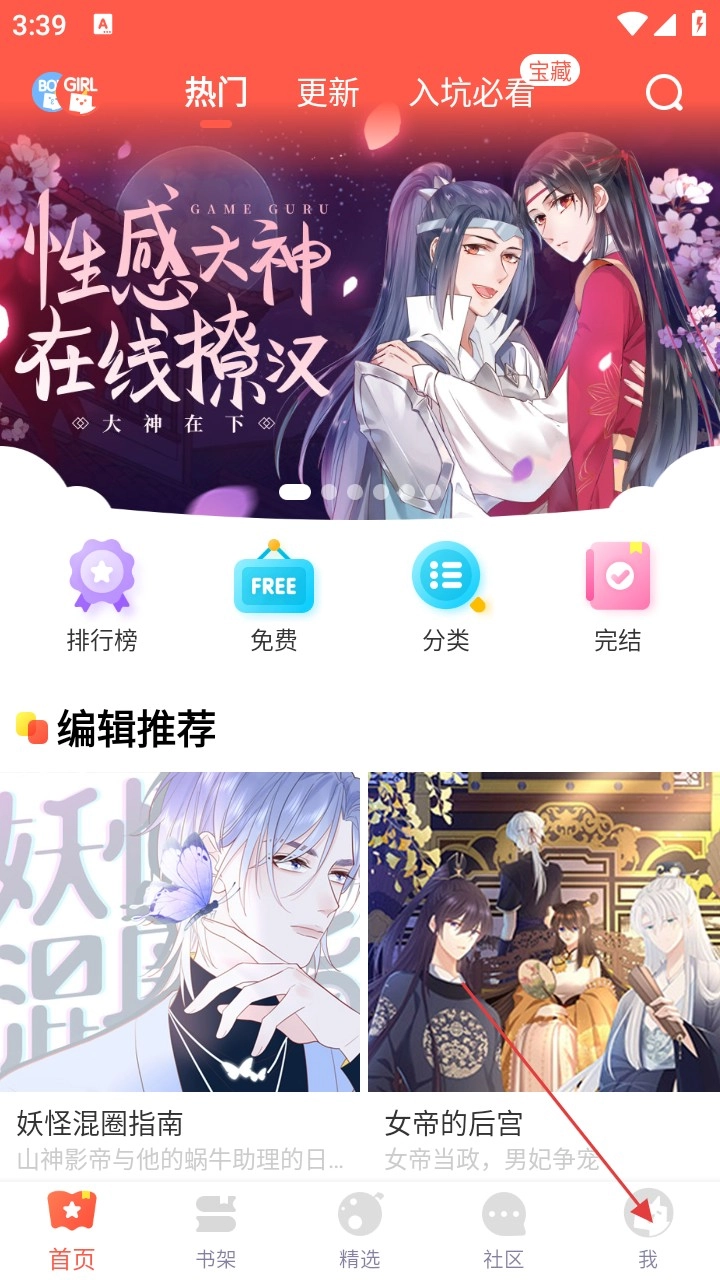 在漫漫漫画的首页,你可以浏览平台推荐的漫画内容,要是想进入个人相关页面,点击界面右下角的【我】按钮就行。