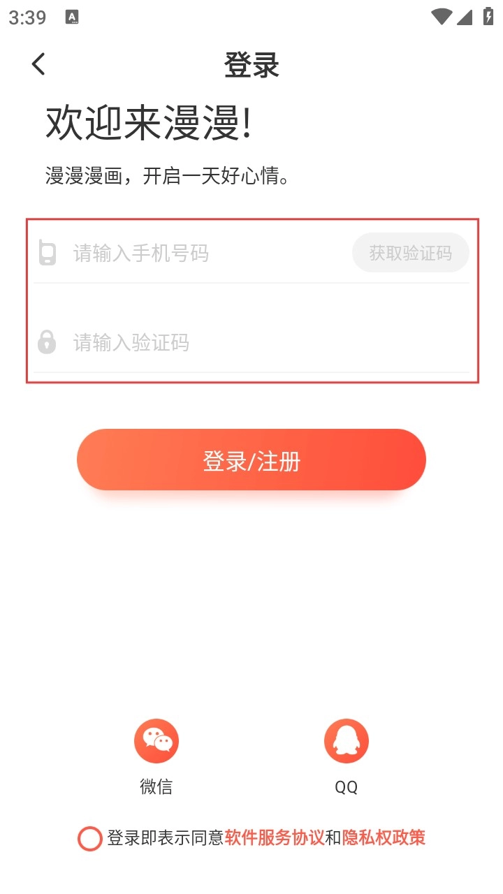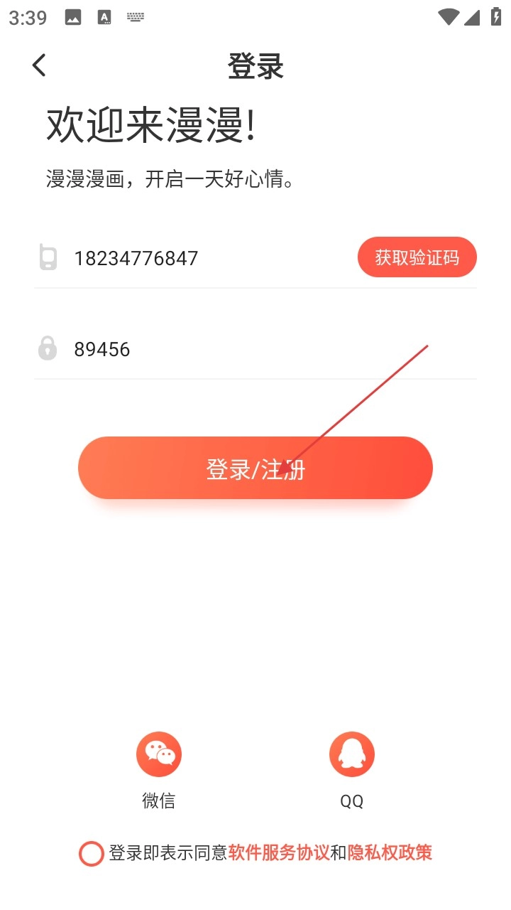3、进入登录页面后,可选择输入手机号并填写验证码的方式登录,也可以通过微信或QQ进行登录。