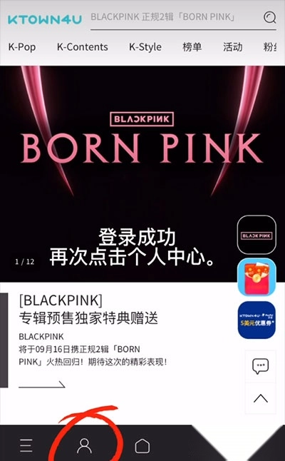 1、打开k4town软件后,点击个人中心完成登录操作。
