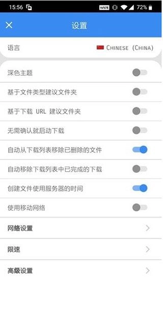 在设置界面中,可对限速、自动创建文件夹、代理配置、预约时间等多项功能进行设置。