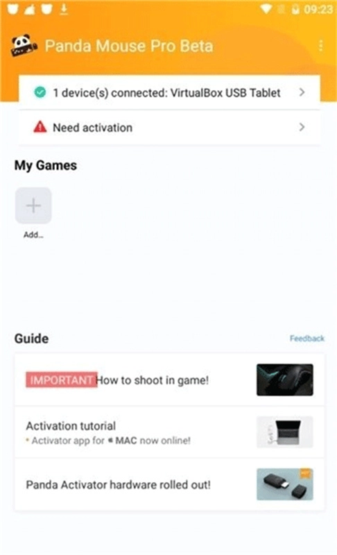 2、需要通过根权限或电脑来完成激活。电脑激活的操作方式是,您得把手机连接到电脑上,然后运行熊猫游戏手柄专业版软件。激活完成之后,就可以把手机的连接线拔掉了。关于激活的详细步骤,我们在应用程序里面准备了完整的教程。
