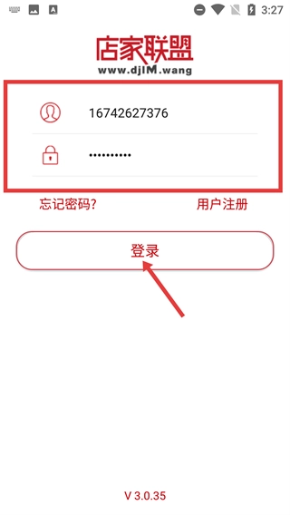 1、进入【店家联盟】的登录页面,填写对应的账号和密码信息,若忘记密码可通过【忘记密码?】功能找回,确认信息无误后点击【登录】按钮即可完成登录操作。
