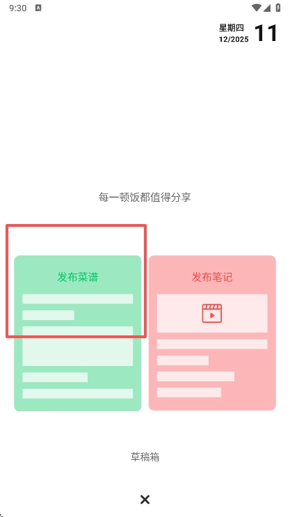 2、在这里选择发布菜谱