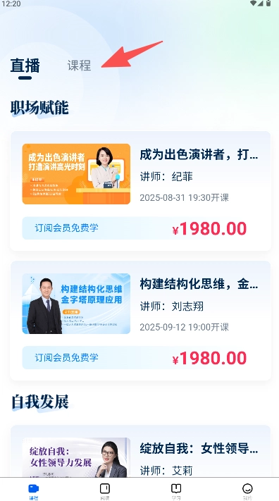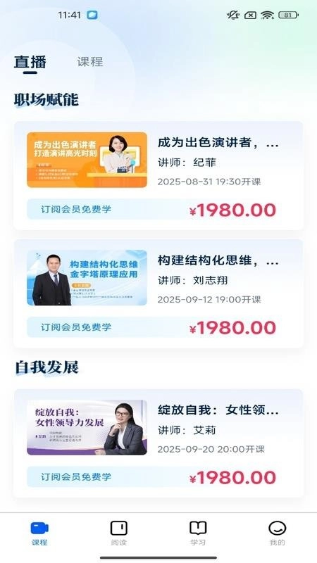 1、课程体系以职场赋能、自我发展等为核心方向搭建,主题划分清晰,定位精准明确。