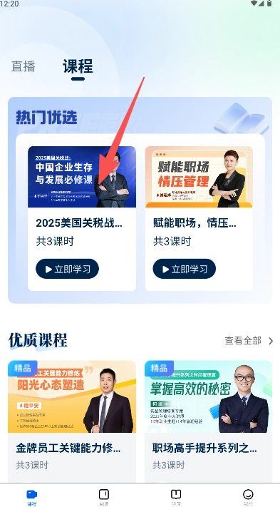 3、支持一键加入学习,在课程页面点击对应按钮就能直接开启学习进程。