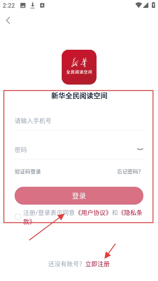 4、借阅前需先登录账号,登录时请输入手机号和密码,并同意相关协议;若尚未注册账号,点击【立即注册】完成注册后,即可进行借阅操作。