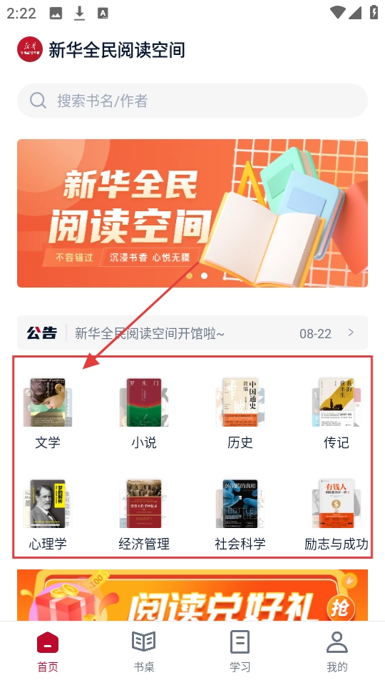 首页设有【文学】【小说】等分类板块,若想寻找心仪的书籍,只需选择对应的分类,就能开启一段超棒的阅读之旅啦。