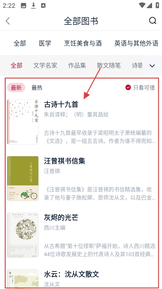 2、所有图书页面都包含各类书籍,例如《古诗十九首》,若想了解相关内容,点击进入即可,查看书籍详情十分便捷。