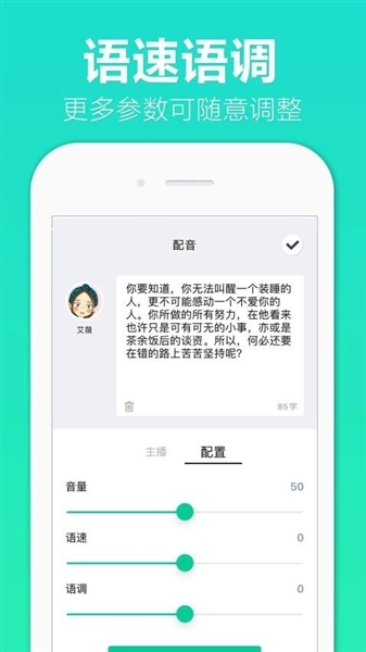 在这里用户可以自由设置音频的音量、语速、语调等参数,并且能够根据自己的心意进行调整。