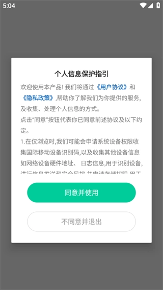 1、先打开阅读用户协议与隐私政策,随后点击同意并使用;