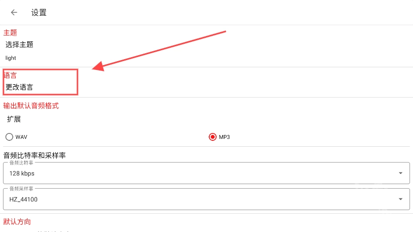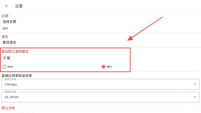 2、接着在设置界面里找到输入音频格式的选项,选择默认的mp3格式就可以了