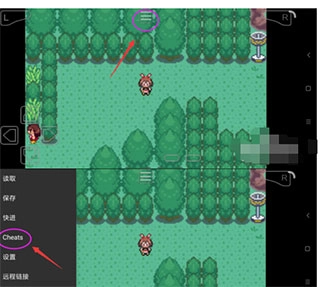 1、启动模拟器,待游戏运行后,点击对应的图标,然后选择Cheats选项;