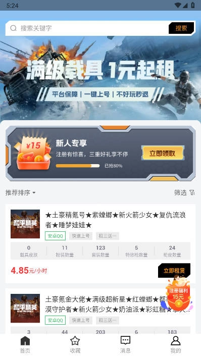 和平租号平台手机版(com.hepinzh.phzh)是一款十分专业的租号云平台,不少热衷于玩和平精英的用户都会在此租号。平台租号价格实惠,账号品质安全可靠,若用户不满意还能申请退款,并且有24小时在线客服提供指导,租号过程无需缴纳押金。
