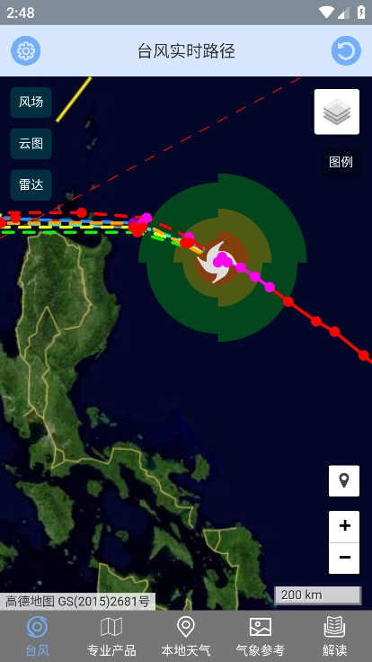 2、接着打开应用,用户就能立刻查看当前台风的详细信息以及移动路径图。