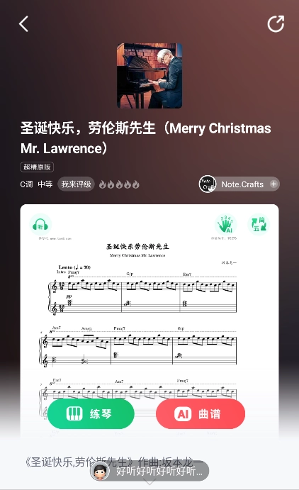 - 播放乐谱时,页面底部会呈现对应的钢琴键盘或吉他琴颈,而且每个音符对应的按键都会通过亮灯来提示。这个贴心的小功能能让您一眼看明白,更轻松地学会弹奏。