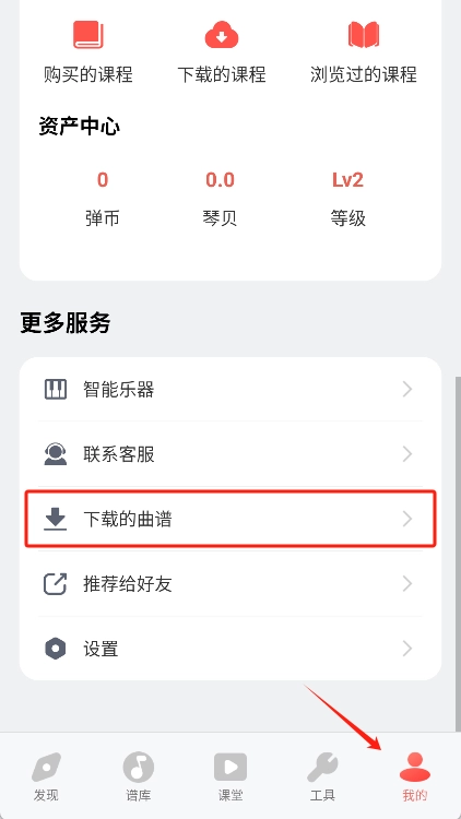 5、最后可以在软件的“我的”界面中找到“我的乐谱”,打开即可看到已保存的曲谱。