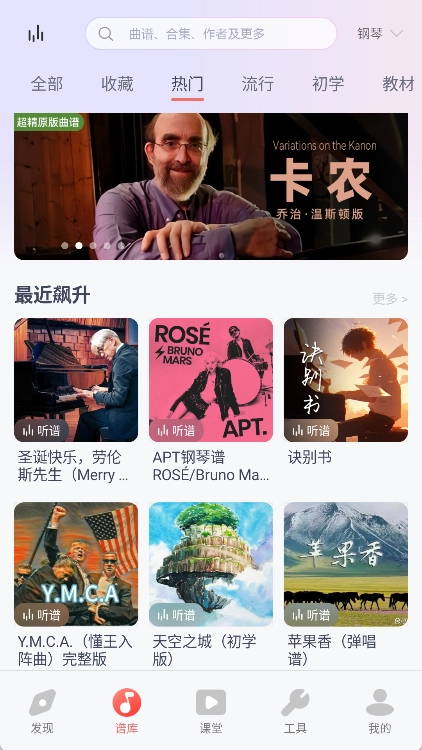我们借助弹吧音乐网的海量乐谱资源,构建起一个收录超10万首钢琴谱与吉他谱的大型曲谱库。不管您打算演奏哪首曲子,在这里都能寻觅到。