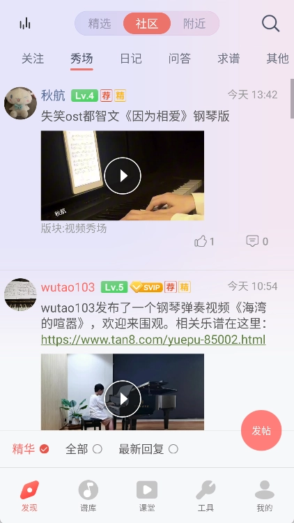 在热闹的社区里,您只需一键就能分享自己的演奏视频,尽情展现音乐才华,打造专属于您的音乐社交圈。让大家都为您的精湛琴技赞叹不已!