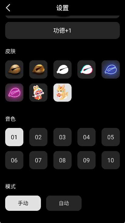 1. 专业音色:提供10种专业木鱼音色可供免费切换,使每一次敲击都蕴含更浓厚的禅意。