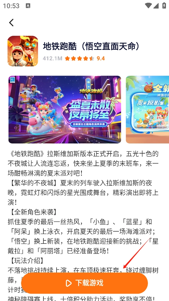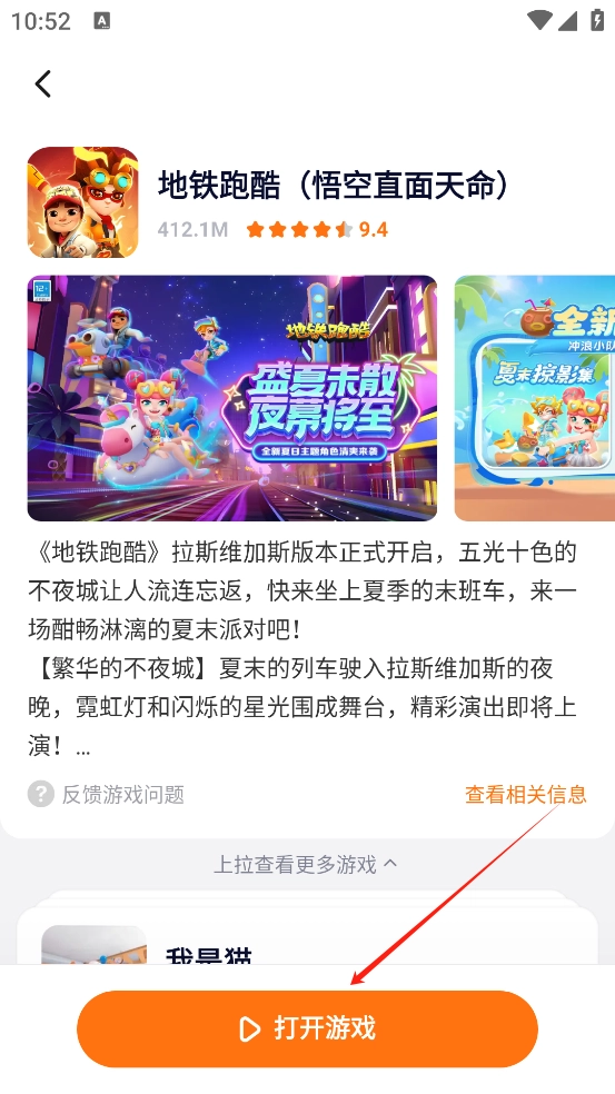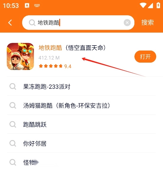 3、游戏搜索:在主界面的搜索框里输入想玩的游戏名称,例如“地铁跑酷”;