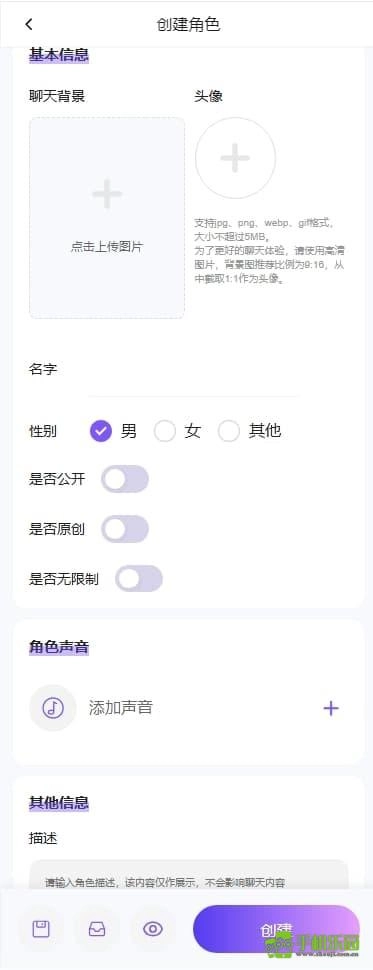 2、自主创建角色:允许用户依据自身偏好创建专属角色,可自定义角色的性格、背景等信息,从而打造出独一无二的聊天对象。