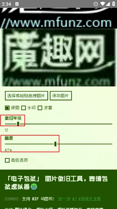 再下方则可以调整图片做旧年份、画质等,如图所示。
