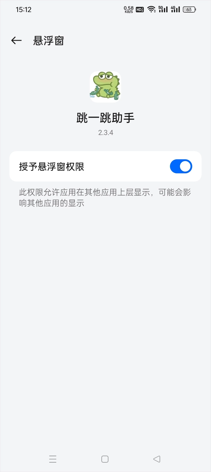 3、授予跳一跳助手的悬浮窗权限;