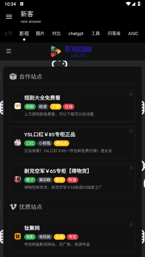 新客资源导航是一款集成了影视、漫画、小说及各类工具资源的多功能导航工具。平台收录的所有工具均为免费使用,无需跳转即可直接点击操作,全程弹窗干扰。用户能便捷筛选到心仪资源,且所有服务完全免费。