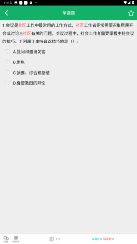 社区工作者免费版是成都英时科技有限公司推出的一款专为备考社工考试的用户打造的刷题工具。软件内涵盖了丰富的社工相关学习内容,不仅收录了全面的练习题,还包含历年考试真题,所有试题均经过精心编排,完全贴合社区招聘考试的需求,能为考生提供充足的复习资源,支持随时随地进行学习和练习。有需要的用户可以前往体验社区工作者考试免费版!
