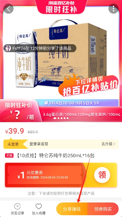 3、查看分享收益:进入商品详情页,找到并点击“分享赚钱”按钮,即可看到分享该商品能获得的收益金额。