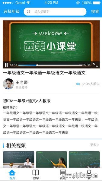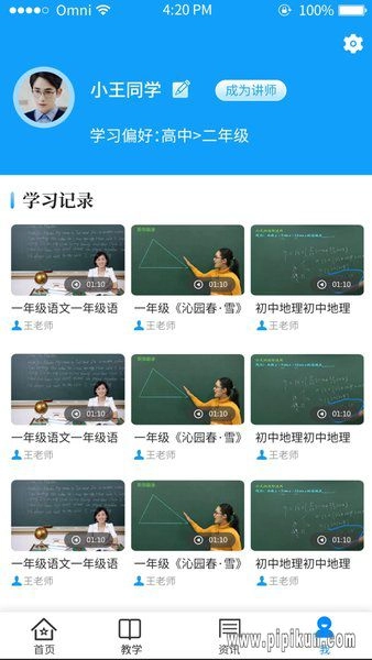你可以根据所在年级挑选对应的课程,在个人中心里能随时查看自己的学习记录;平台提供海量全科目视频学习资源,还有丰富的拓展学习视频等你解锁,欢迎来皮皮鲲站体验!